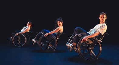 À travers des éléments ludiques et visuels, entre construction et déconstruction, la pièce propose une réflexion sur la différence et le regard qu’on pose sur elle. Nos trois acolytes naviguent ainsi dans un espace de jeux et de poésie aux côtés des fauteuils roulants qui tour à tour prennent vie et se transforment eux aussi en entités.