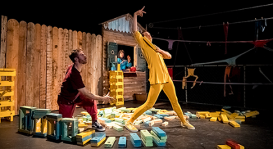 Destiné aux tout-petits de 2 à 5 ans, les vocabulaires de la danse, du théâtre et du cirque se tissent dans un langage sans paroles, où la relation à l’autre et à l’espace prime. L’univers musical combine les sonorités des vents, avec clarinette et saxophone, et se rythme des sons du quotidien et des matières manipulées, laissant libre cours à l’instrumentiste de s’inspirer à la fois des artistes en scène que de l’environnement qui les entoure.