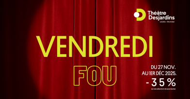 Du 27 novembre à 10h jusqu’au 1er décembre 2025 à 23h59. Pendant 5 jours seulement, bénéficiez de 35 % de rabais sur 10 spectacles* exceptionnels !